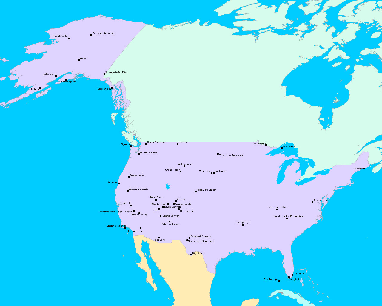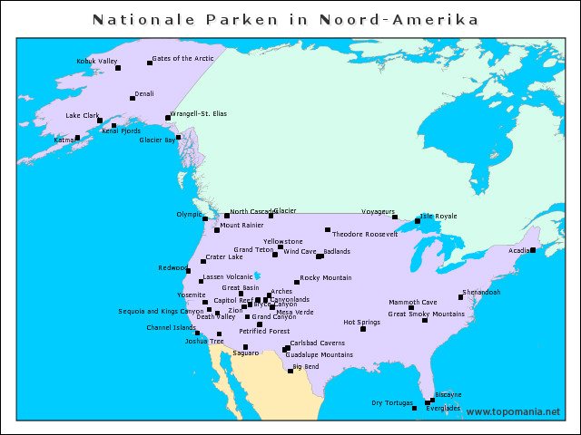 Kleine kaart Nationale Parken in Noord-Amerika (640x480)