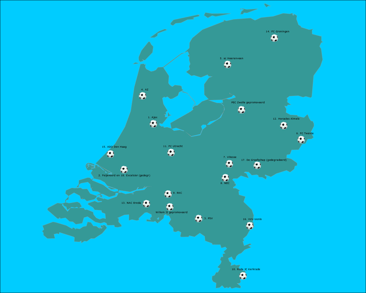 Kleine kaart Nederlandse Eredivisie 2011-2012 (640x480)