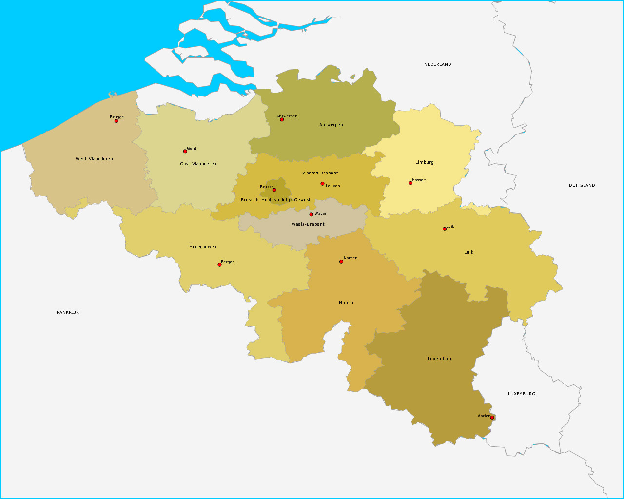 Kleine kaart Provincies en hoofdsteden van België (640x480)