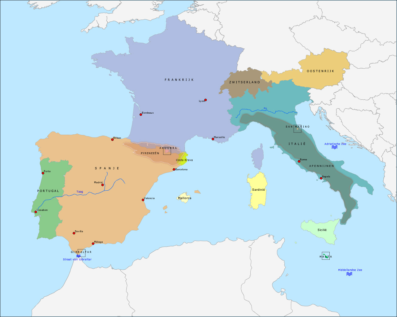 Kleine kaart Zuidwest-Europa (640x480)