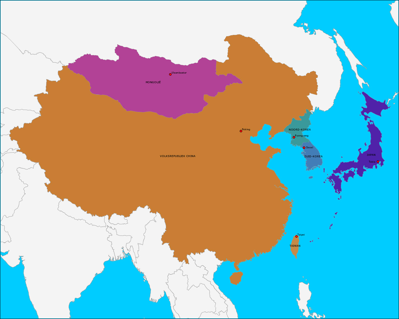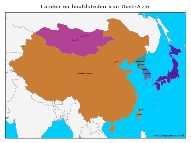 Topografie Landen en hoofdsteden van Oost-Azië