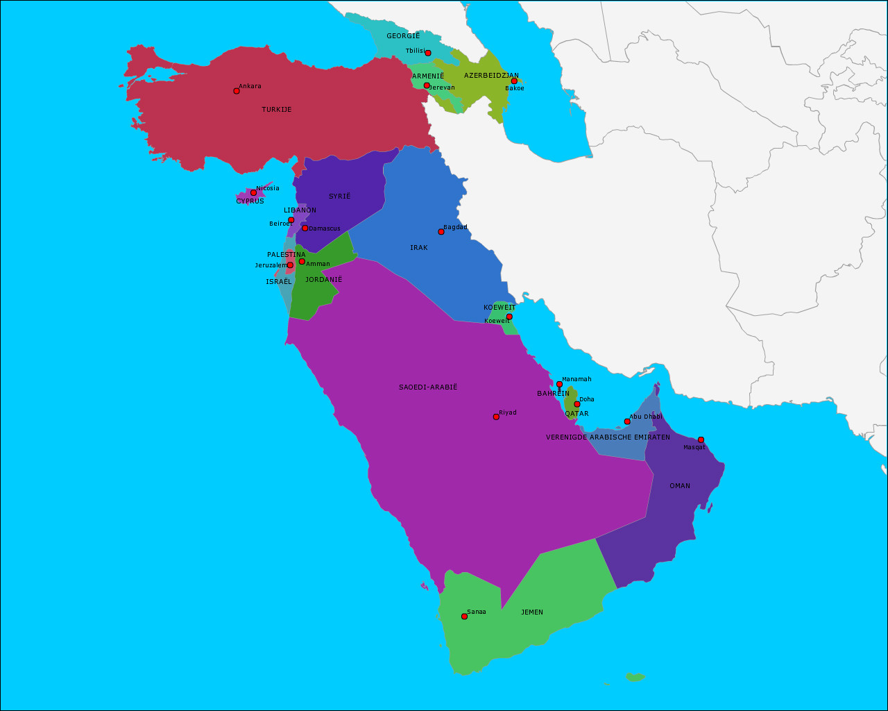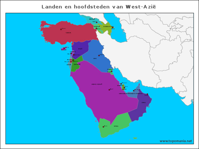 Kleine kaart Landen en hoofdsteden van West-Azië (640x480)