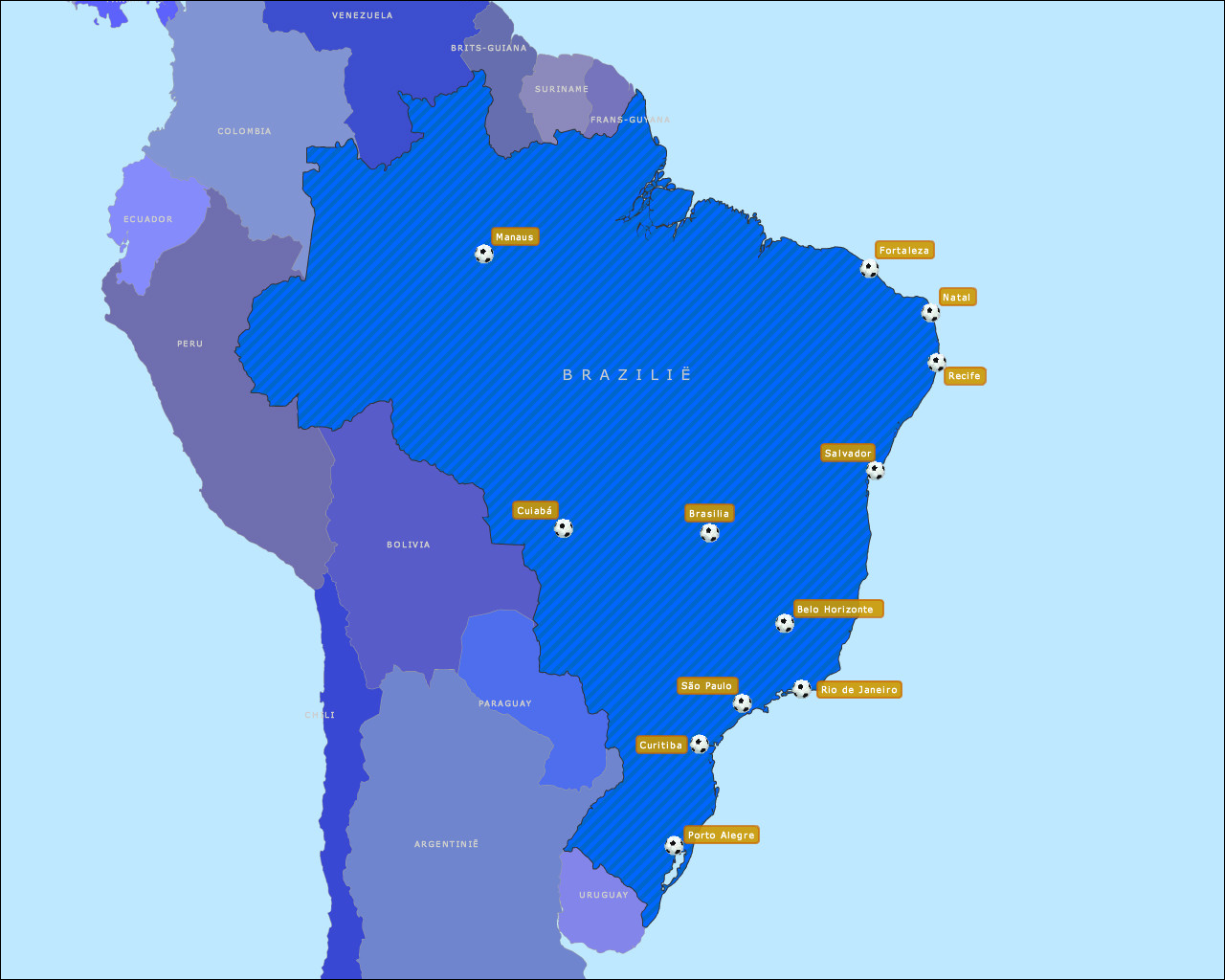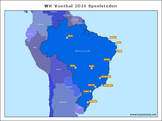 Kleine kaart WK Voetbal 2014 Speelsteden (640x480)