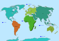 Werelddelen en -wateren Een werelddeel is niet hetzelfde als een continent. Een werelddeel is geopolitiek gedefinieerd, terwijl een continent een grote geologische landmassa is die niet of nauwelijks met een andere landmassa verbonden is. Zo vormen de werelddelen Azië en Europa samen het continent Eurazië. Het werelddeel Afrika bestaat uit het continent Afrika + Madagaskar en andere Afrikaanse eilanden. |