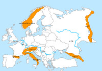 Noord- en West-Europa gebieden en water Alleen gebieden en water |