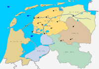 Een combinatie van de provinciekaarten van Groningen, Friesland en Drenthe