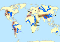 De Wereld (Landen, Plaatsen en Water) Een wereldkaart met belangrijke landen, plaatsen en wateren. |