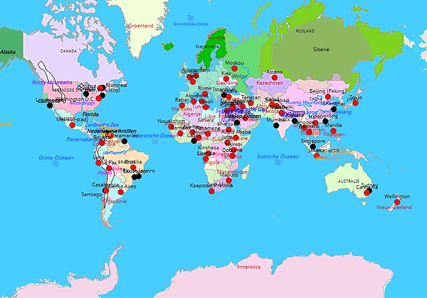 Topografie Wereld landen en steden