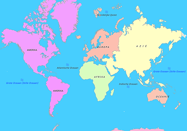 Kleine kaart Werelddelen en Oceanen (640x480)